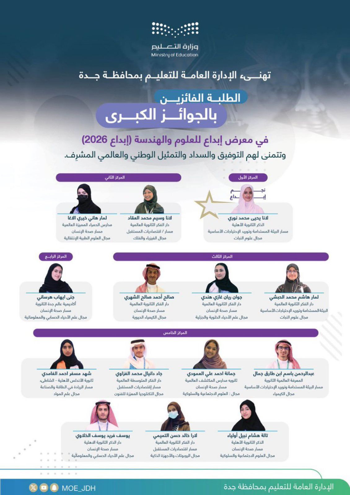 Student Lamar Hani Al-Agha, second place winner in the Human Health Track at Creativity Exhibition 2026
